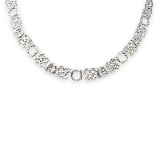 "Cherished Orchid" Necklace with Pendant - Rhodium with Blue Orchid House