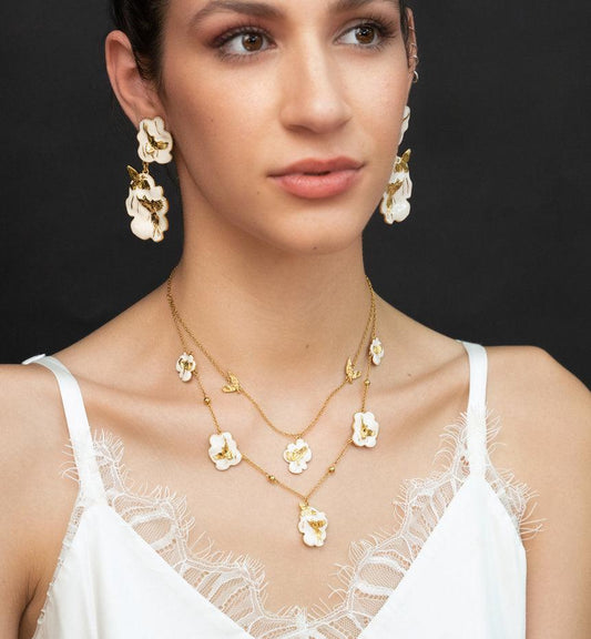 "Cherished Orchid" Necklace with Pendants - Blue Orchid House & Butterfly GOLD