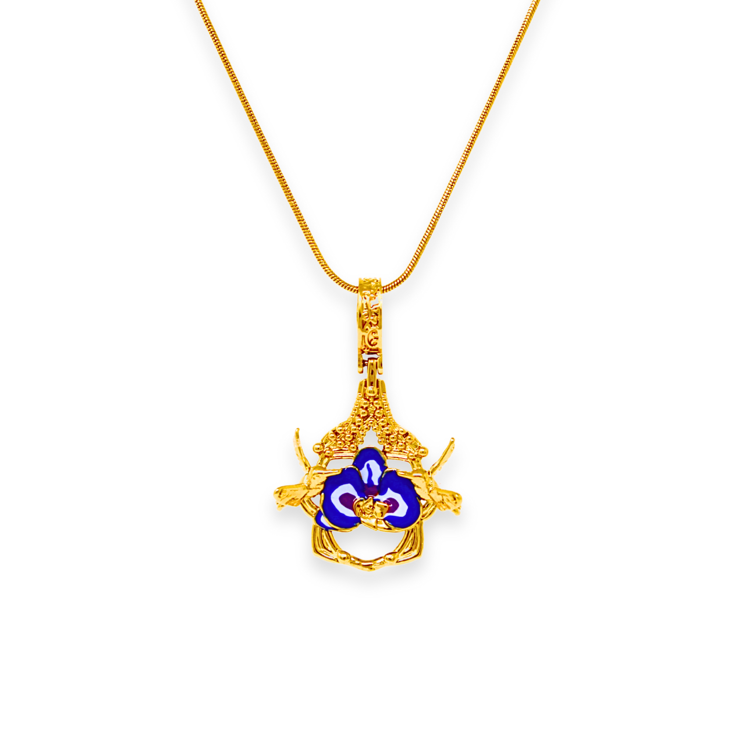 "Cherished Orchid" Pendant - Gold Butterfly