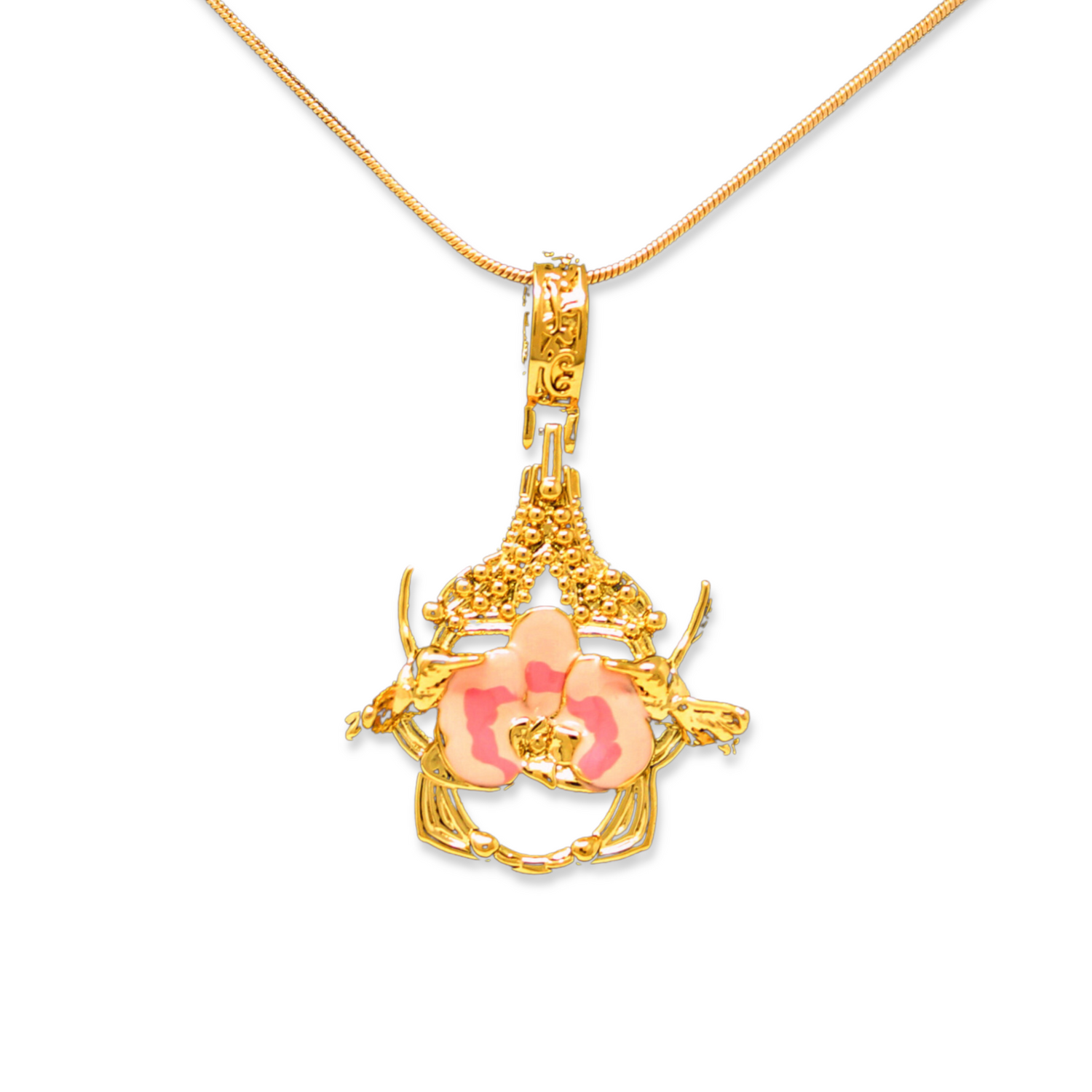 "Cherished Orchid" Pendant - Gold with Pink Orchid