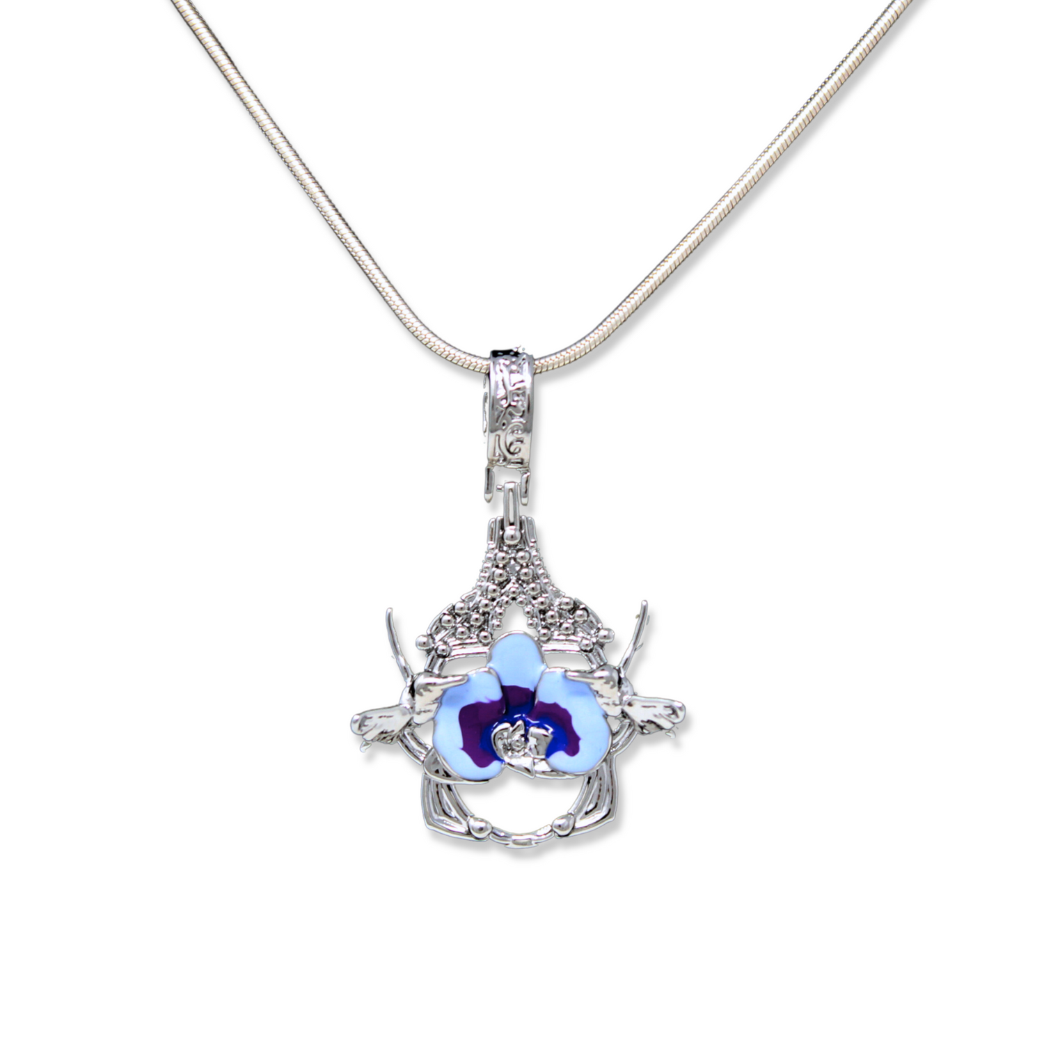 "Cherished Orchid" Pendant - White Rhodium with Blue Orchid