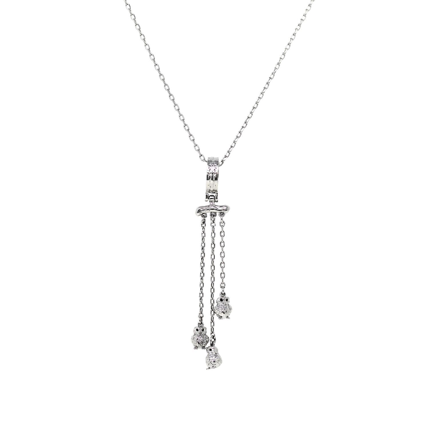 "Brave" Baby Owls Pendant - White Rhodium