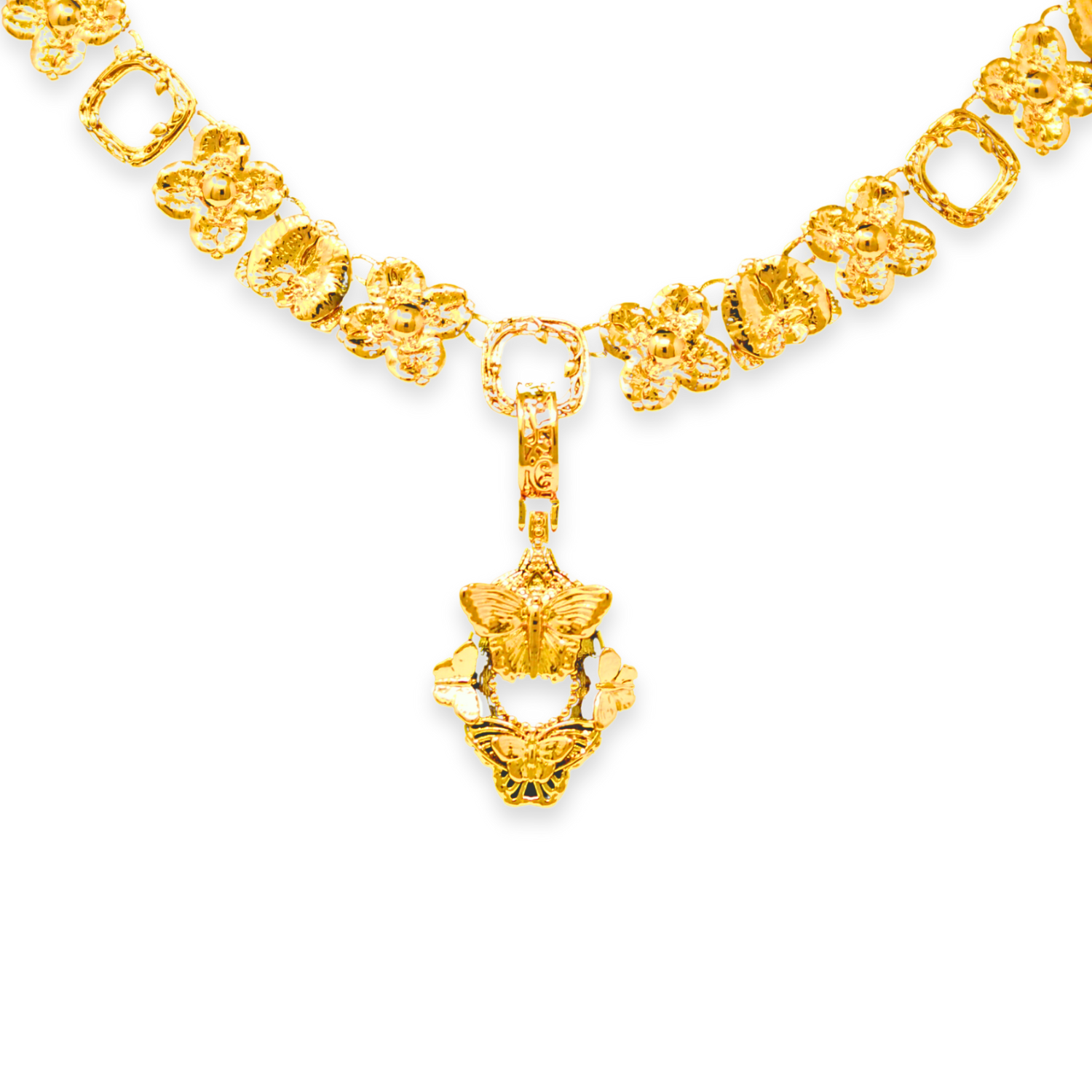 "Cherished Orchid" Necklace with Pendant - Gold Butterfly