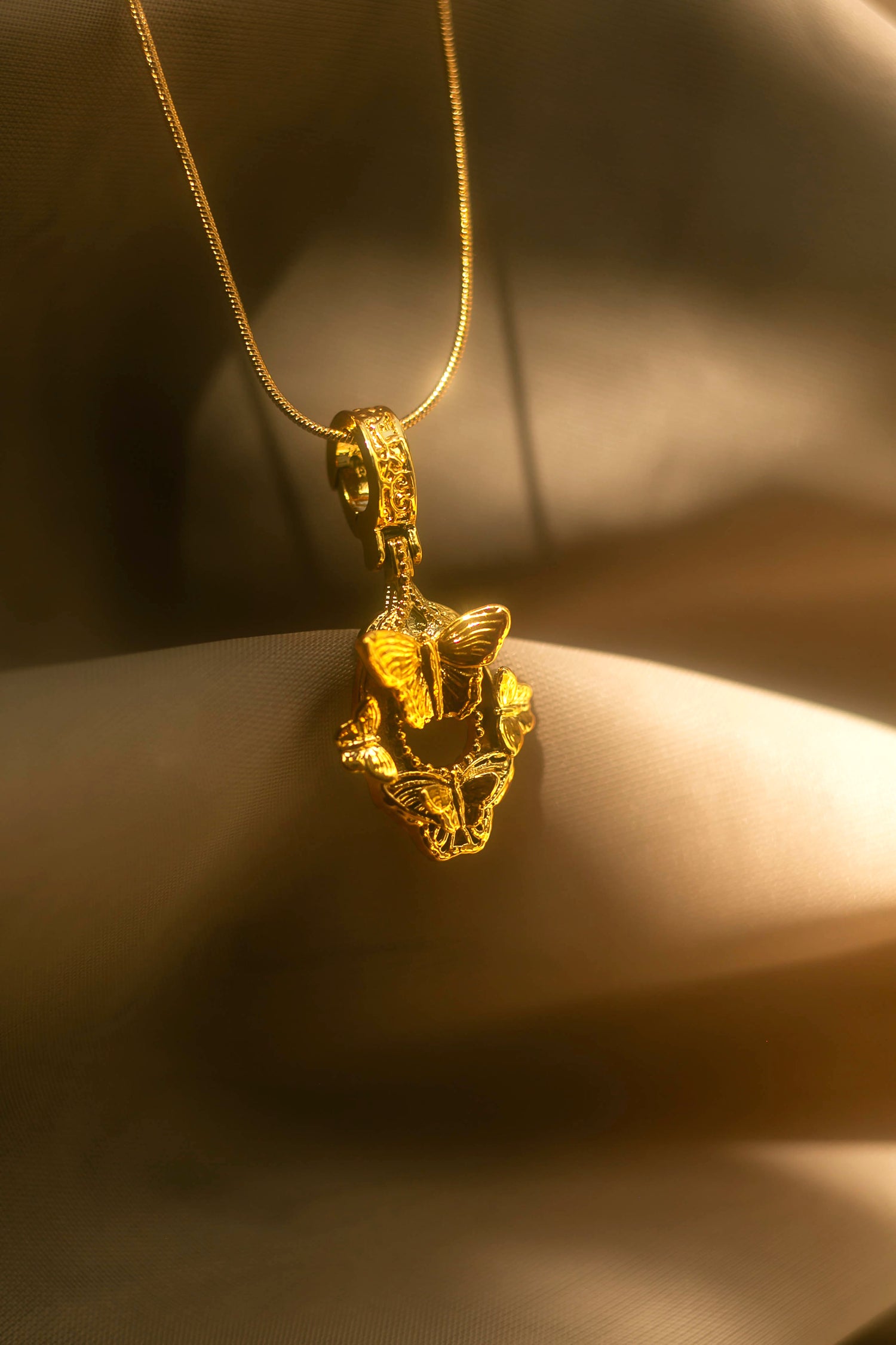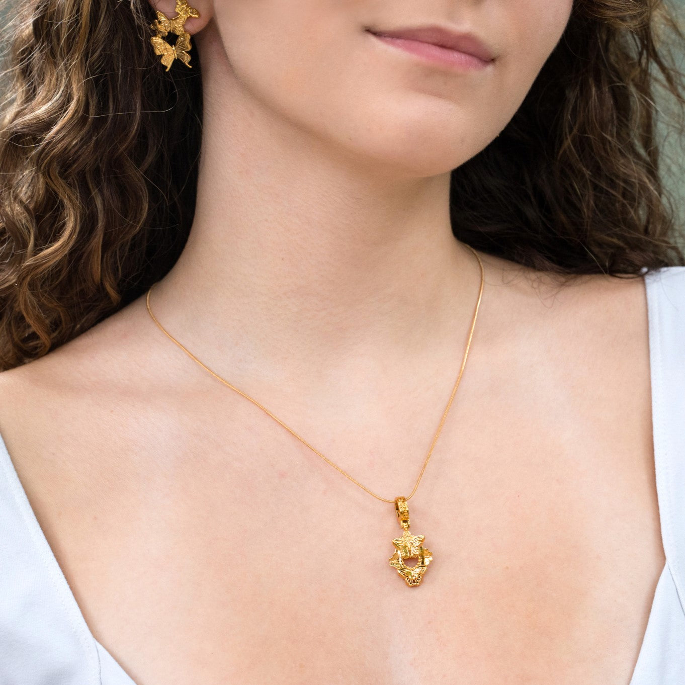 "Cherished Orchid" Pendant - Gold Butterfly