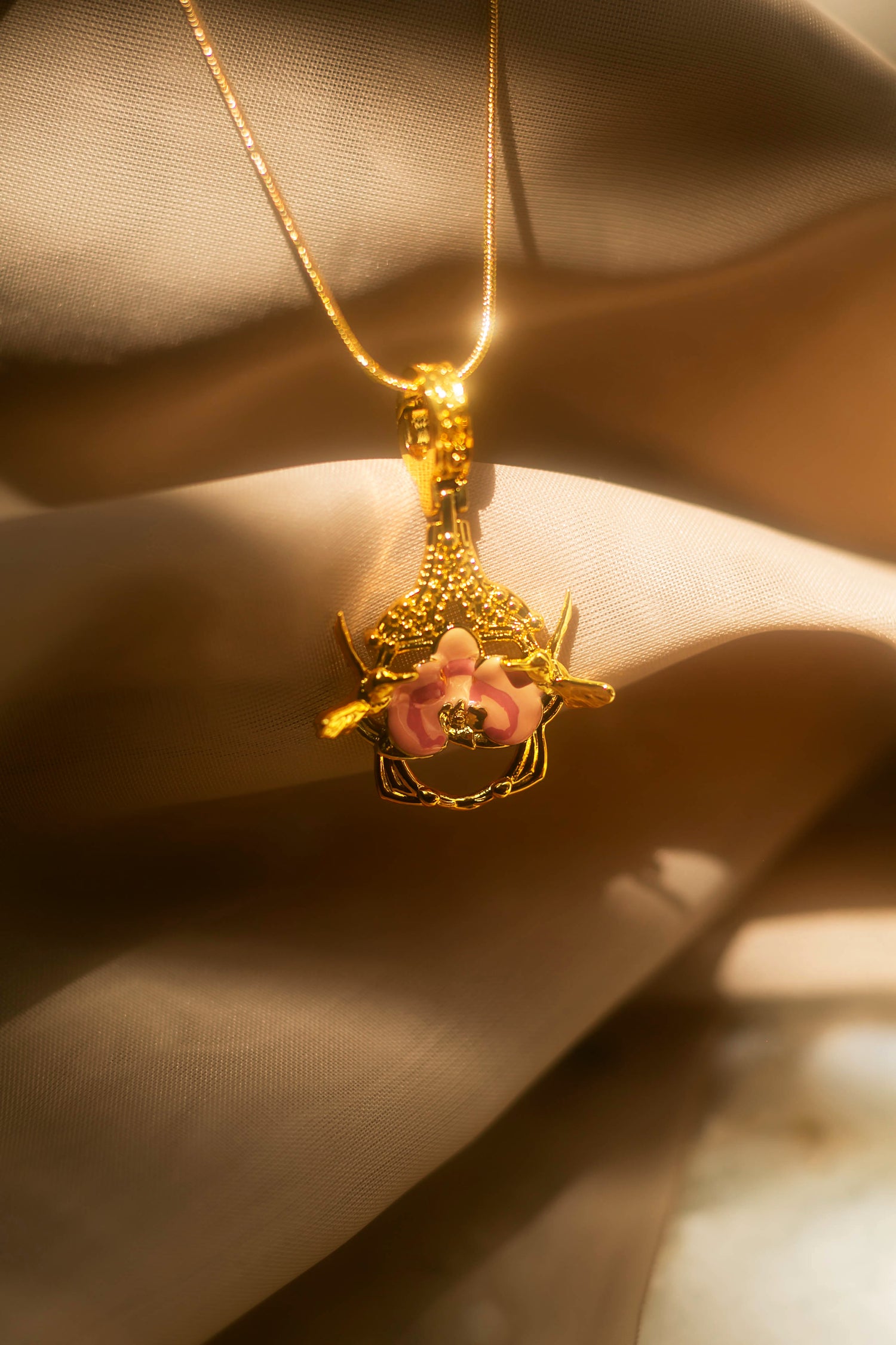 "Cherished Orchid" Pendant - Gold with Pink Orchid