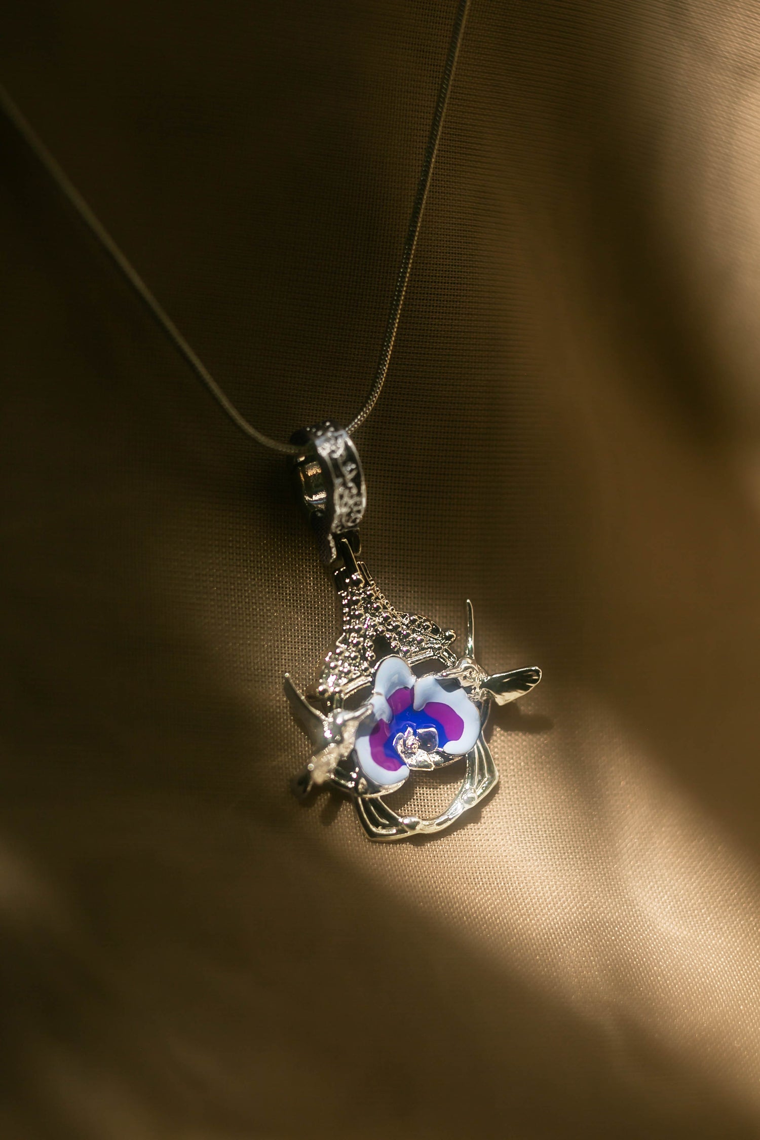 "Cherished Orchid" Pendant - White Rhodium with Blue Orchid