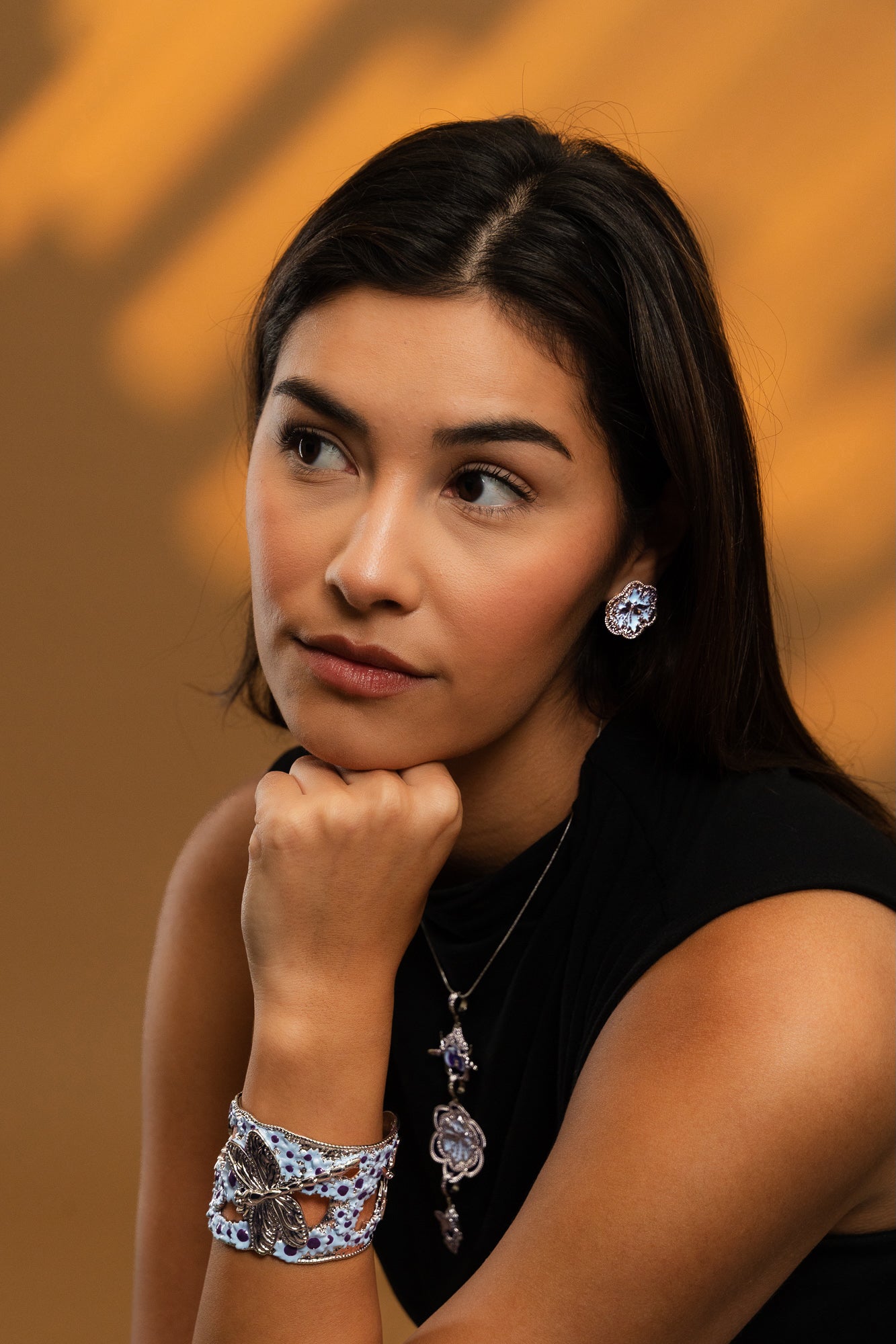 White Rhodium-Plated | Hand-Painted Blue & Purple Enamel