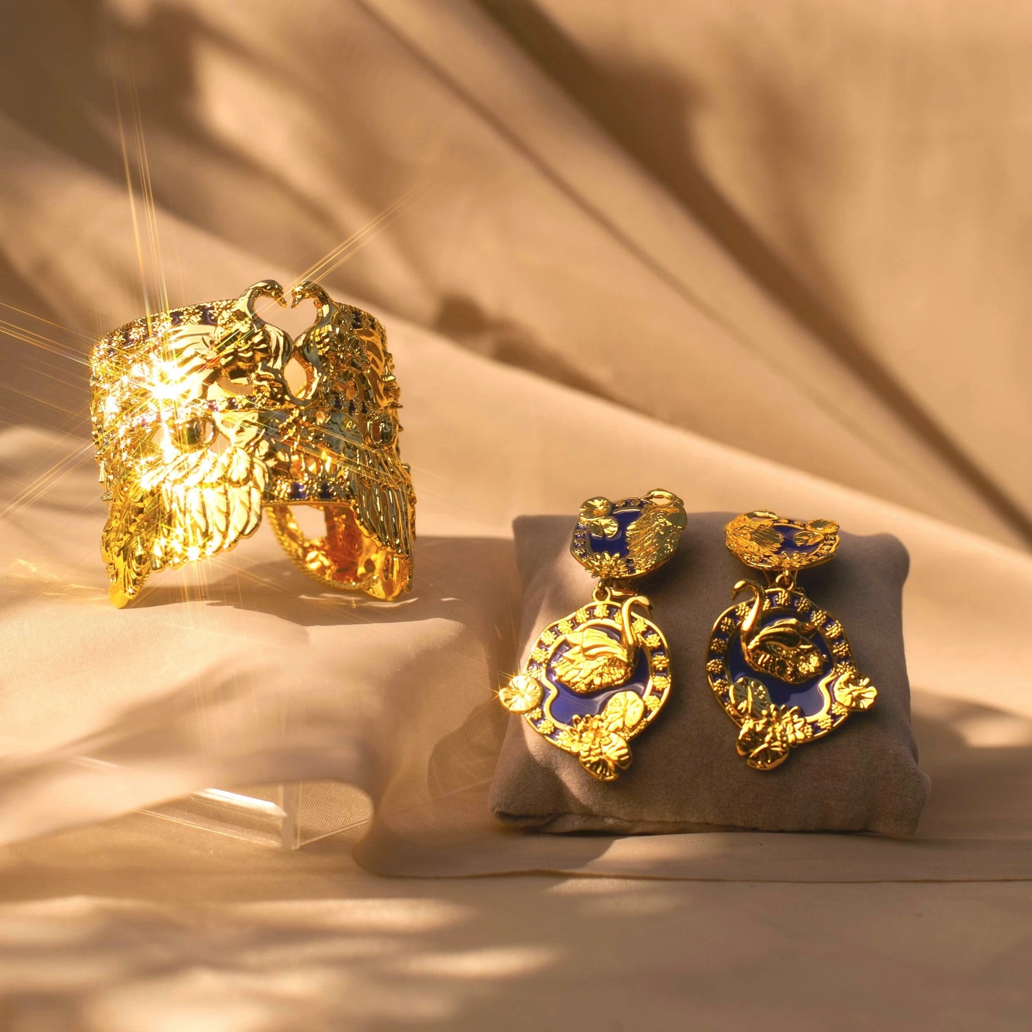 "Tea and Lilies" Cuff - Gold & Royal Blue