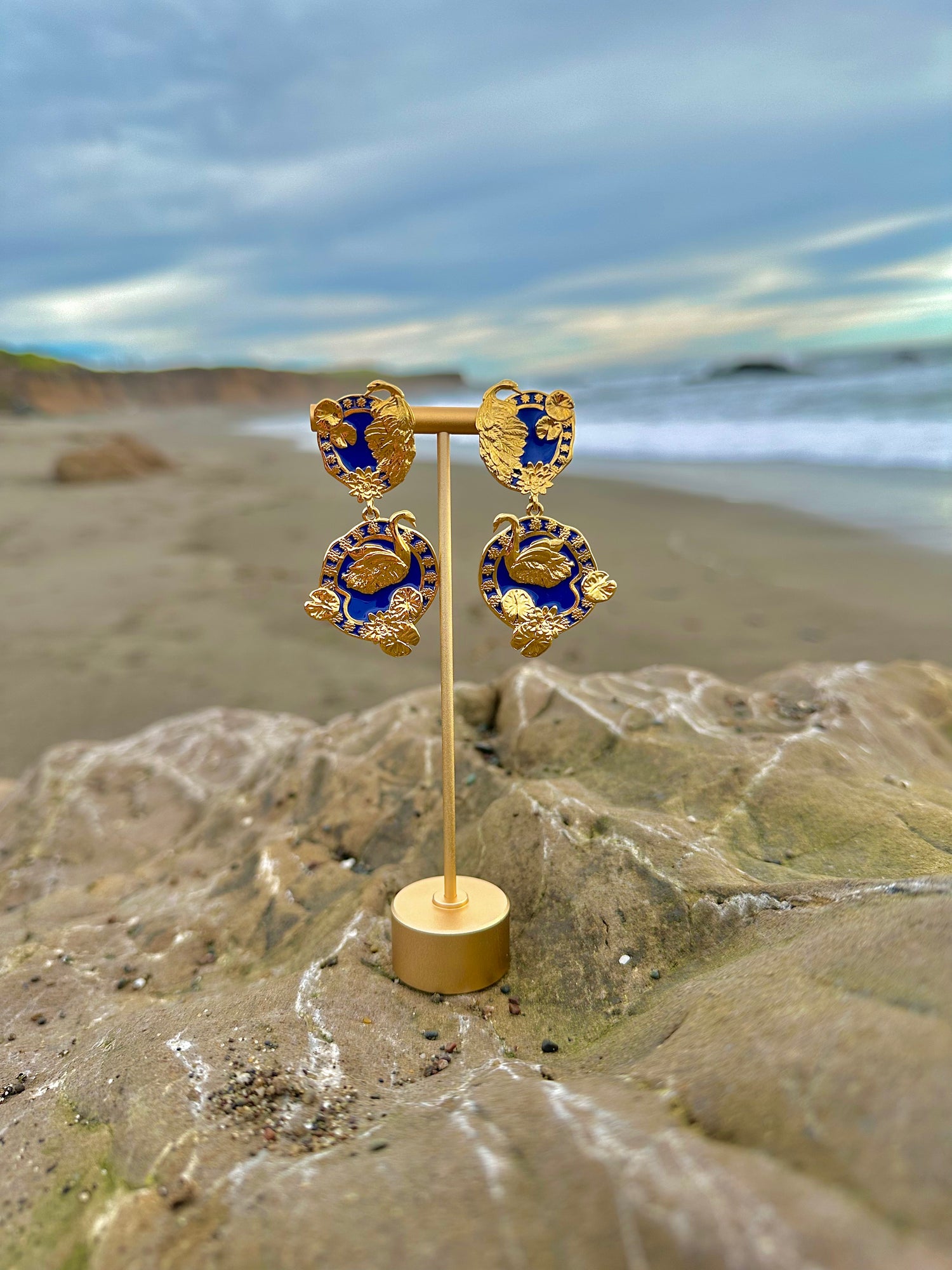 "Tea and Lilies" Large Earrings - Royal Blue & Gold