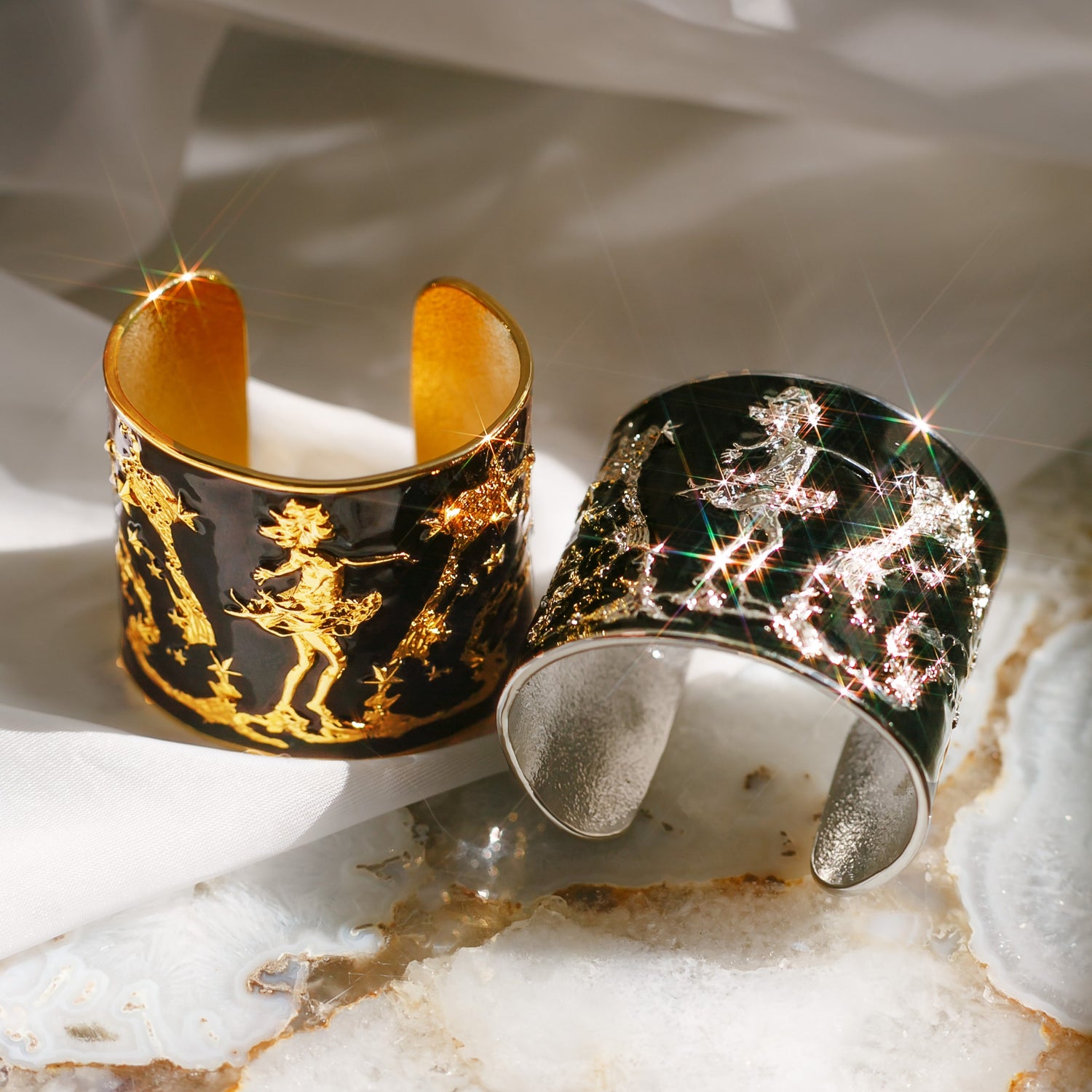 "She Moves The Stars" Cuff Bracelet - Silver & Black