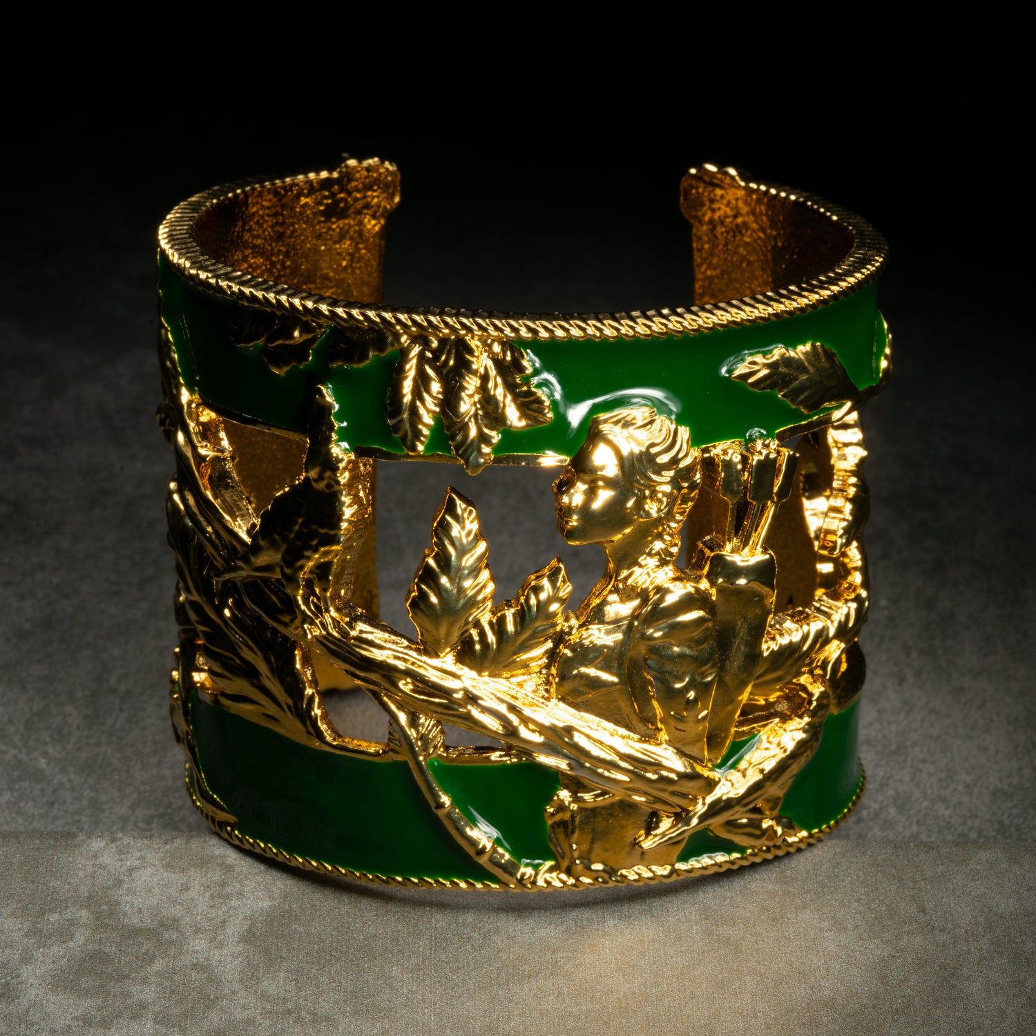 Inspired by Angela Mia's full-figure sculpture, Vigor, this bracelet cuff depicts a strong archer who commands respect and gives respect, with a robust character and unwavering values.