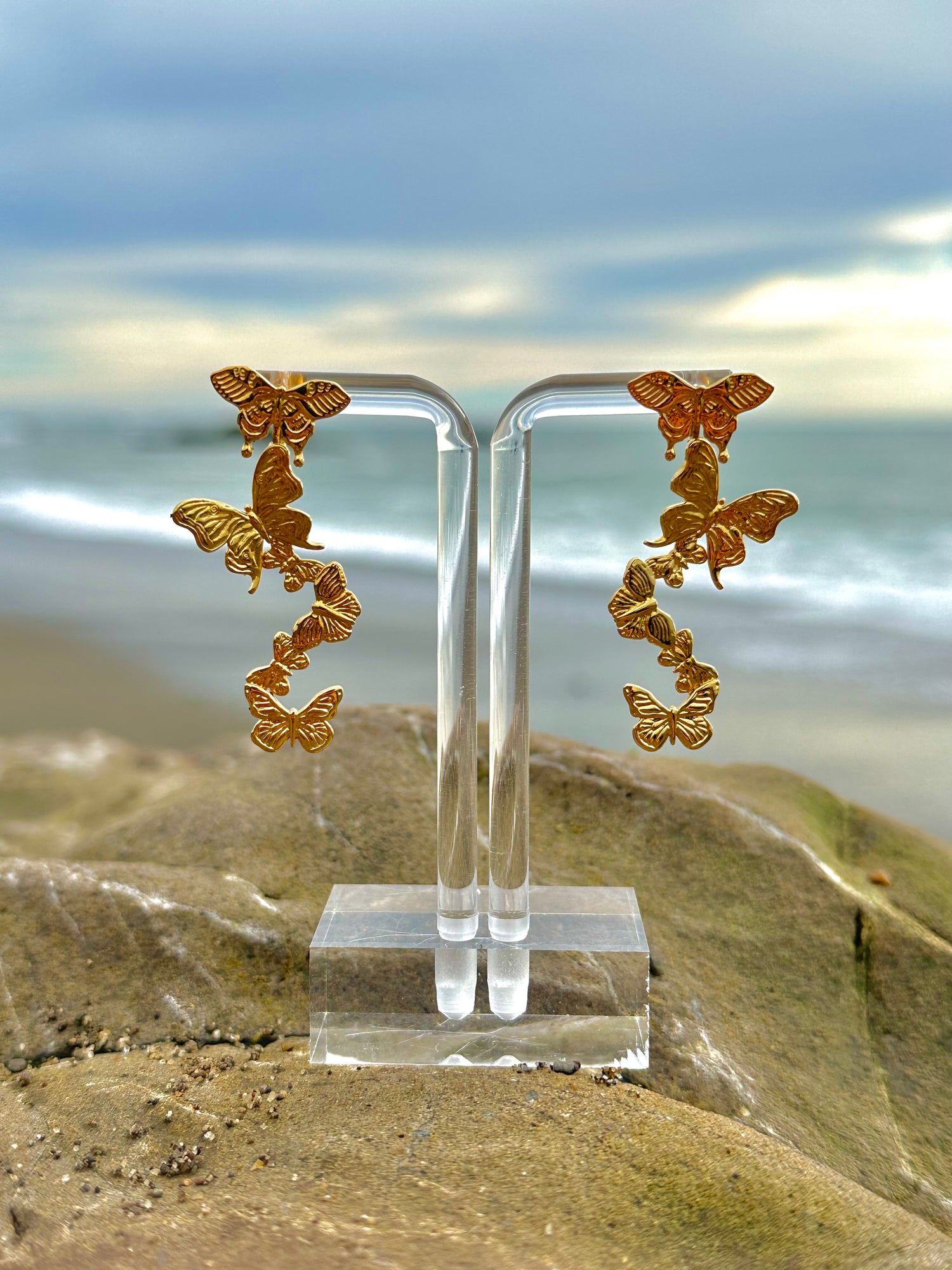 Crafted with an 18k gold plate, these delicate drop earrings tell a story of resilience, with a loving tribute to the butterflies in our lives who lift us up.