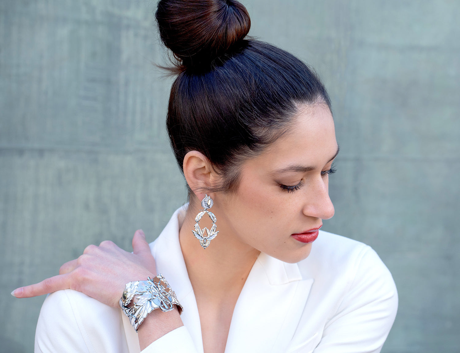 Like the sculpture that inspired it, these pieces of wearable art celebrate the joy of freedom, reminding us to embrace our true selves and touch the sky!