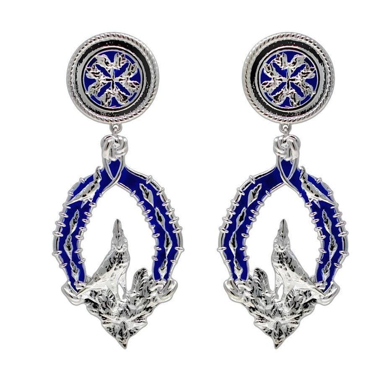 Crafted with white rhodium plate, and set against a blue enamel, the Vigor earrings serve as a reminder to remain steadfast in embracing your true self, while projecting an aura of respect and dignity.