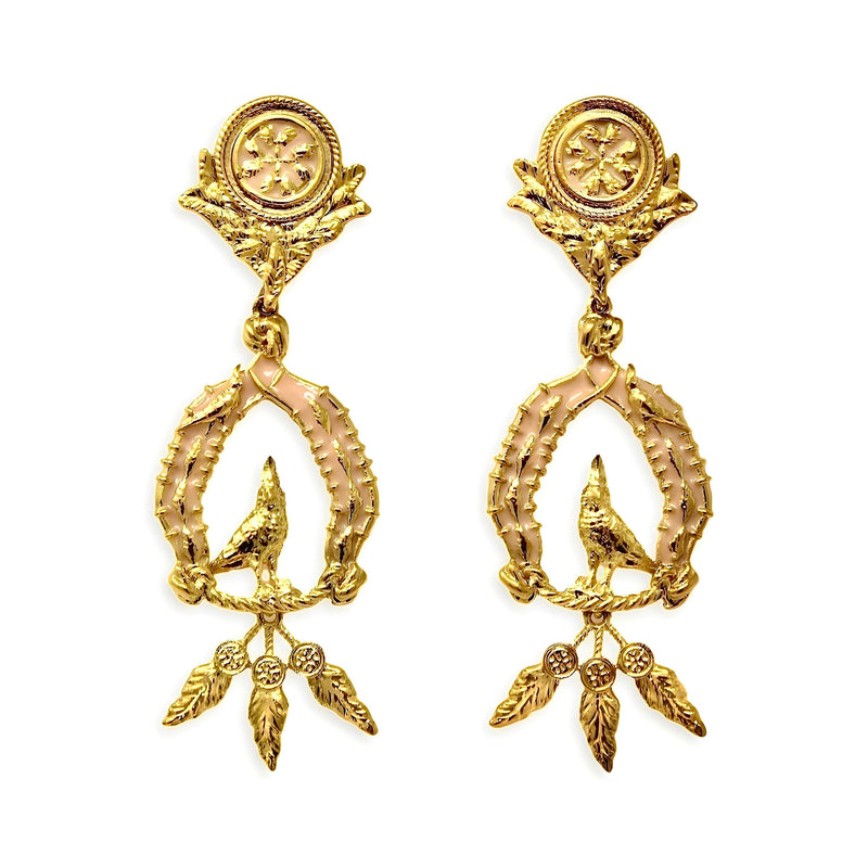 Crafted with 18K gold plate, set against a soft blush enamel, the Vigor earrings serve as a reminder to remain steadfast in embracing your true self, while projecting an aura of respect and dignity.